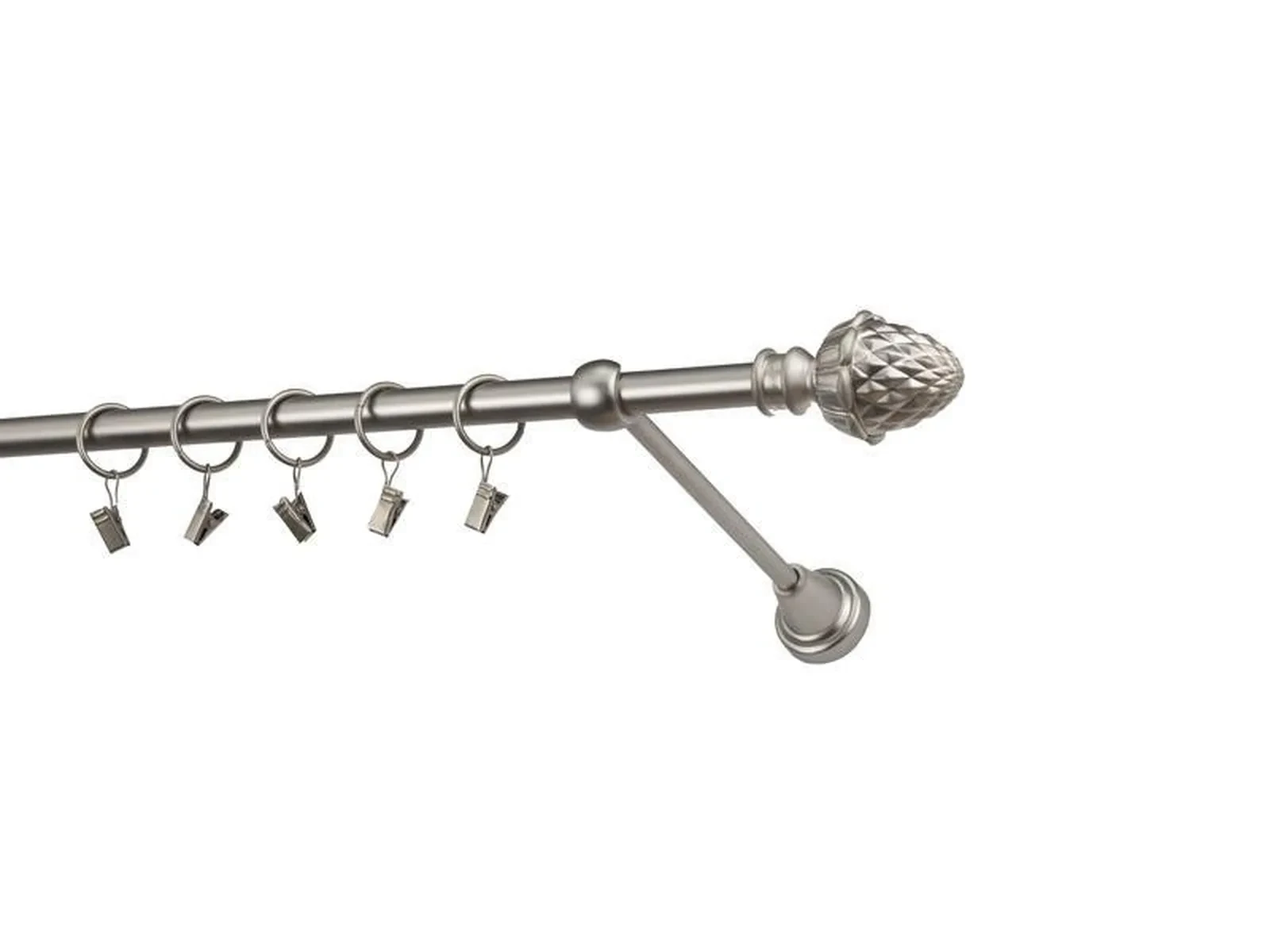 Dĺžka 1200 mm - tyč 16mm - 1200mm - 1ks, držiak - 2ks, koncovka - 2ks, krúžok so štipcom - 11ks (pri výbere parametra príslušenstvo s krúžkami so štipcom), skrutky a hmoždinky na montáž