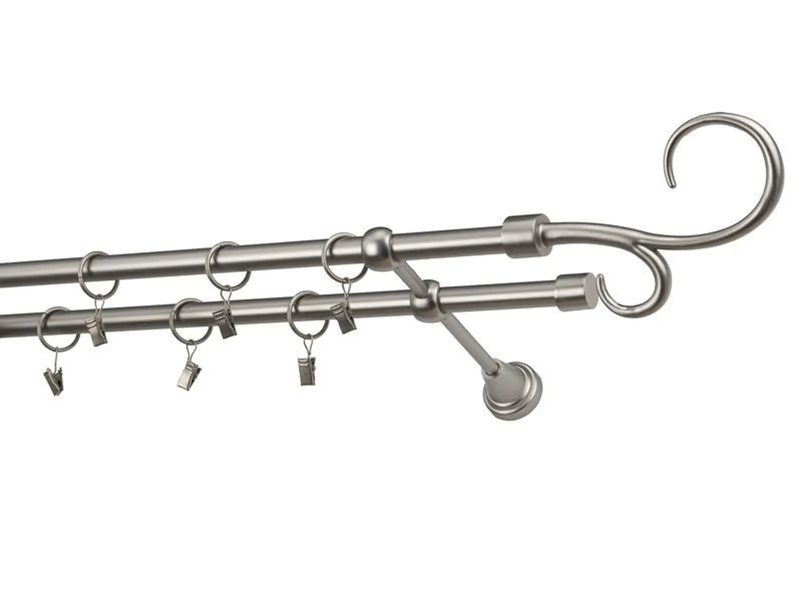Dvojradová garniža s povrchovou úpravou - odtieň satin-nikel (matné striebro). Celokovové garniže s kvalitnou povrchovou úpravou - galvanické pokovovanie. Galvanické pokovovanie zabezpečuje vyššiu povrchovú tvrdosť, zvýšenú dolnosť voči poškriabaniu, hladký povrch. Dodávané sú v kompletoch.