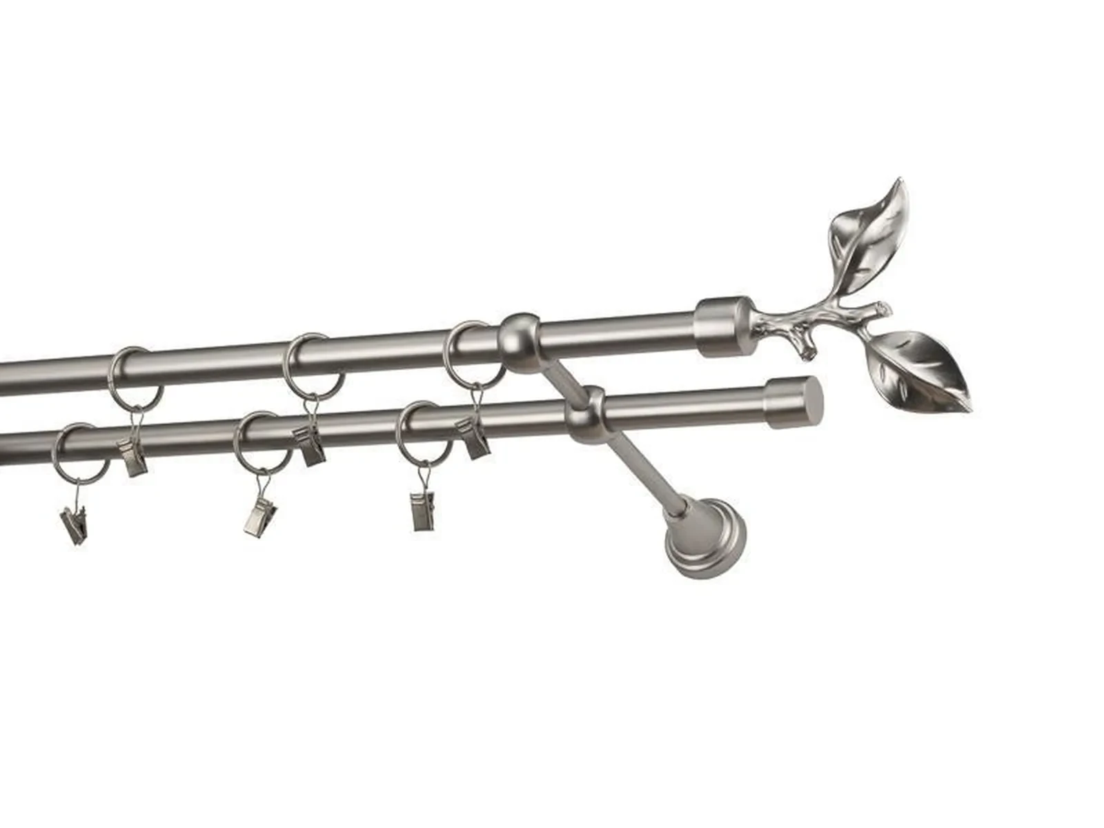 Dvojradová garniža s povrchovou úpravou - odtieň satin-nikel (matné striebro). Celokovové garniže s kvalitnou povrchovou úpravou - galvanické pokovovanie. Galvanické pokovovanie zabezpečuje vyššiu povrchovú tvrdosť, zvýšenú dolnosť voči poškriabaniu, hladký povrch. Dodávané sú v kompletoch.