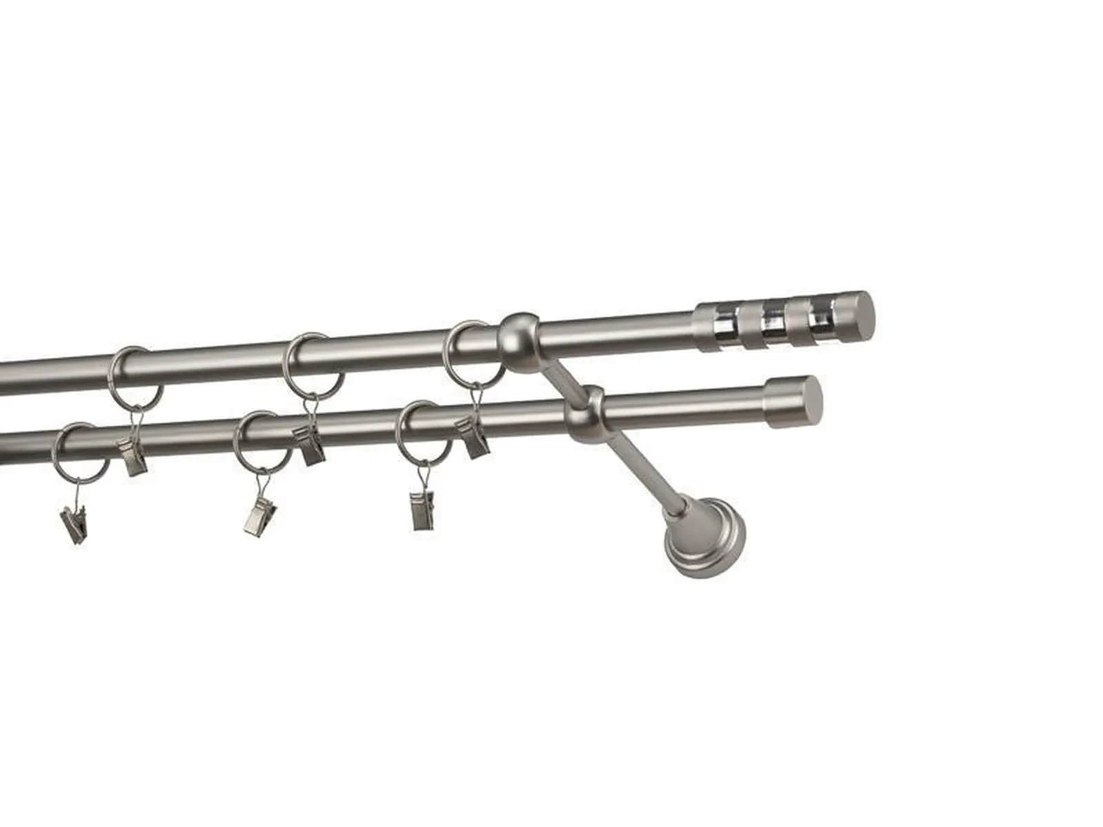 Dvojradová garniža s povrchovou úpravou - odtieň satin-nikel (matné striebro). Celokovové garniže s kvalitnou povrchovou úpravou - galvanické pokovovanie. Galvanické pokovovanie zabezpečuje vyššiu povrchovú tvrdosť, zvýšenú dolnosť voči poškriabaniu, hladký povrch. Dodávané sú v kompletoch.