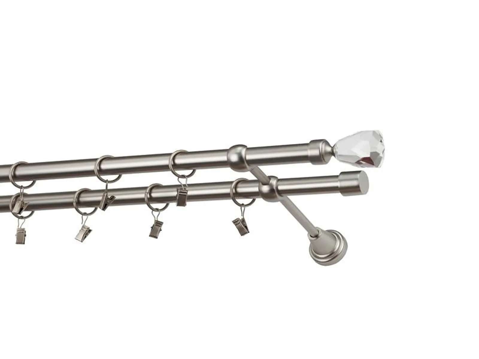 Dvojradová garniža s povrchovou úpravou - odtieň satin-nikel (matné striebro). Celokovové garniže s kvalitnou povrchovou úpravou - galvanické pokovovanie. Galvanické pokovovanie zabezpečuje vyššiu povrchovú tvrdosť, zvýšenú dolnosť voči poškriabaniu, hladký povrch. Dodávané sú v kompletoch.