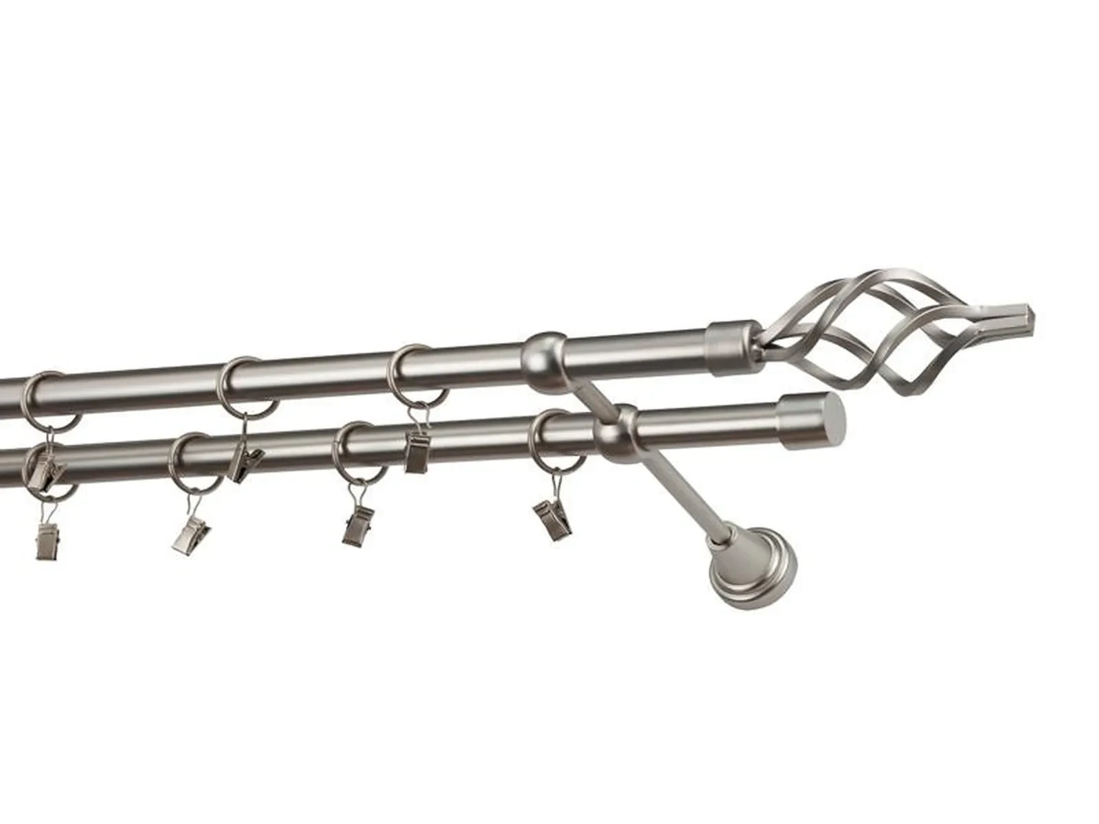 Dvojradová garniža s povrchovou úpravou - odtieň satin-nikel (matné striebro). Celokovové garniže s kvalitnou povrchovou úpravou - galvanické pokovovanie. Galvanické pokovovanie zabezpečuje vyššiu povrchovú tvrdosť, zvýšenú dolnosť voči poškriabaniu, hladký povrch. Dodávané sú v kompletoch.
