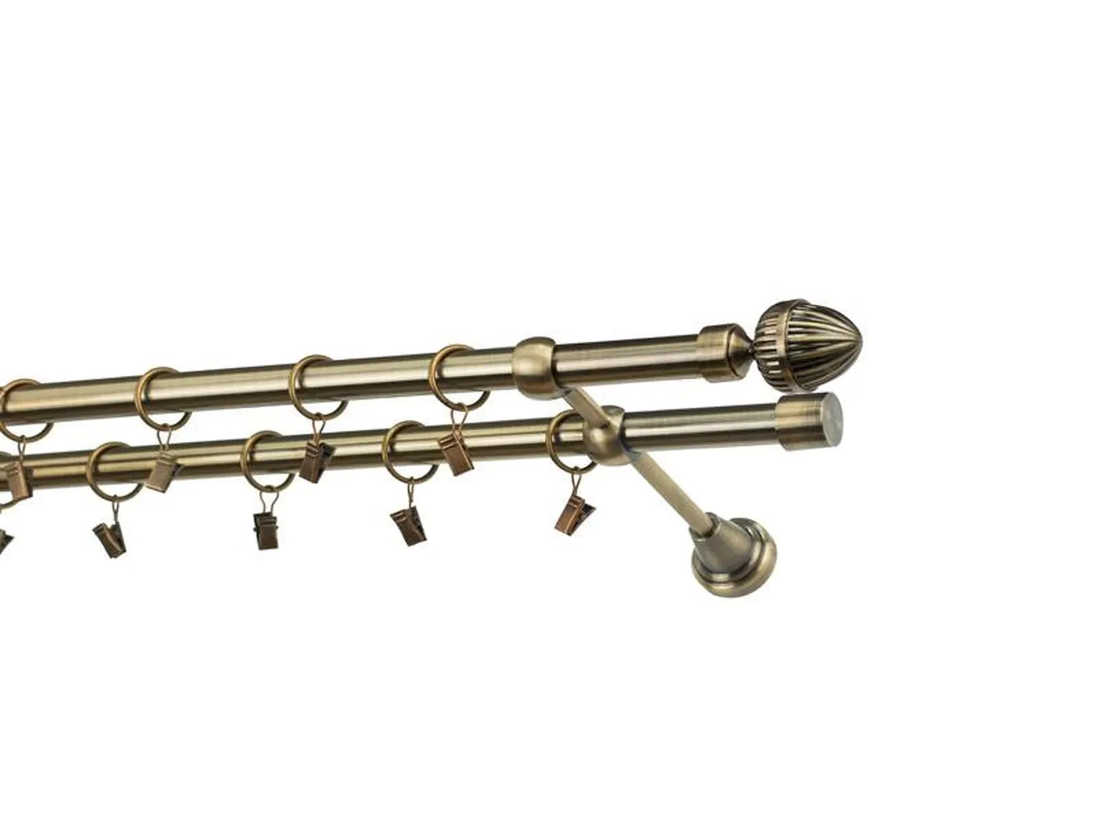 Dĺžka 1600 mm - tyč 19mm - 1600mm - 2ks, držiak dvojitý - 2ks, koncovka - 2ks, koncovka zadná(PULLO) - 2ks, krúžok so štipcom - 30ks (pri výbere parametra príslušenstvo s krúžkami so štipcom), skrutky a hmoždinky na montáž