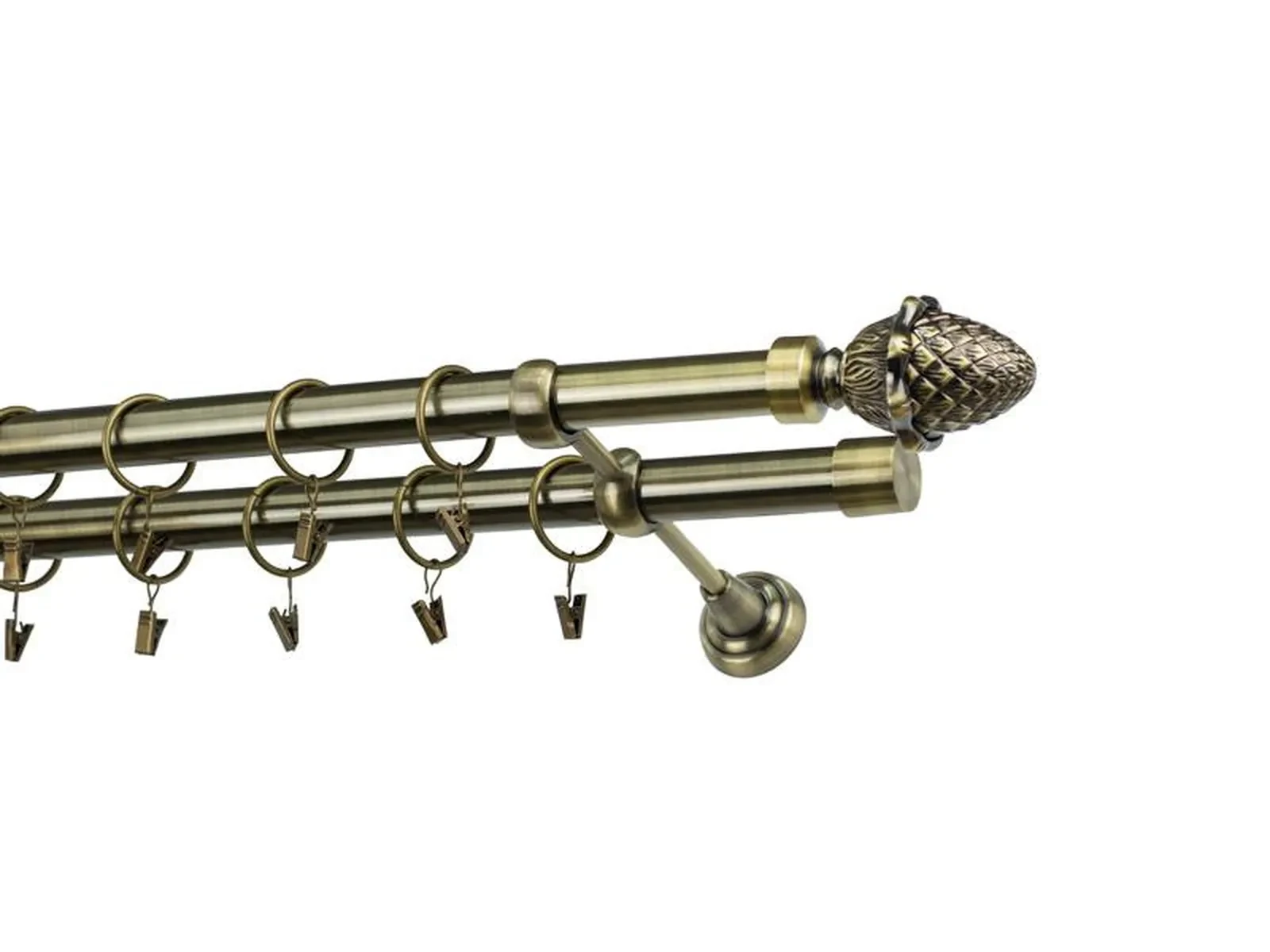 Dvojradová garniža s povrchovou úpravou - odtieň antik (matné zlato). Celokovové garniže s kvalitnou povrchovou úpravou - galvanické pokovovanie. Galvanické pokovovanie zabezpečuje vyššiu povrchovú tvrdosť, zvýšenú dolnosť voči poškriabaniu, hladký povrch. Dodávané sú v kompletoch.